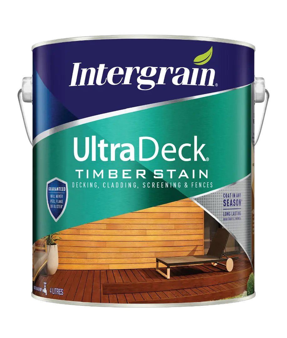 1. Remove excess water from the surface and allow the timber to dry for at least 1 hour before coating. Stir Intergrain UltraDeck Timber Stain thoroughly before and during use with a flat blade stirrer.