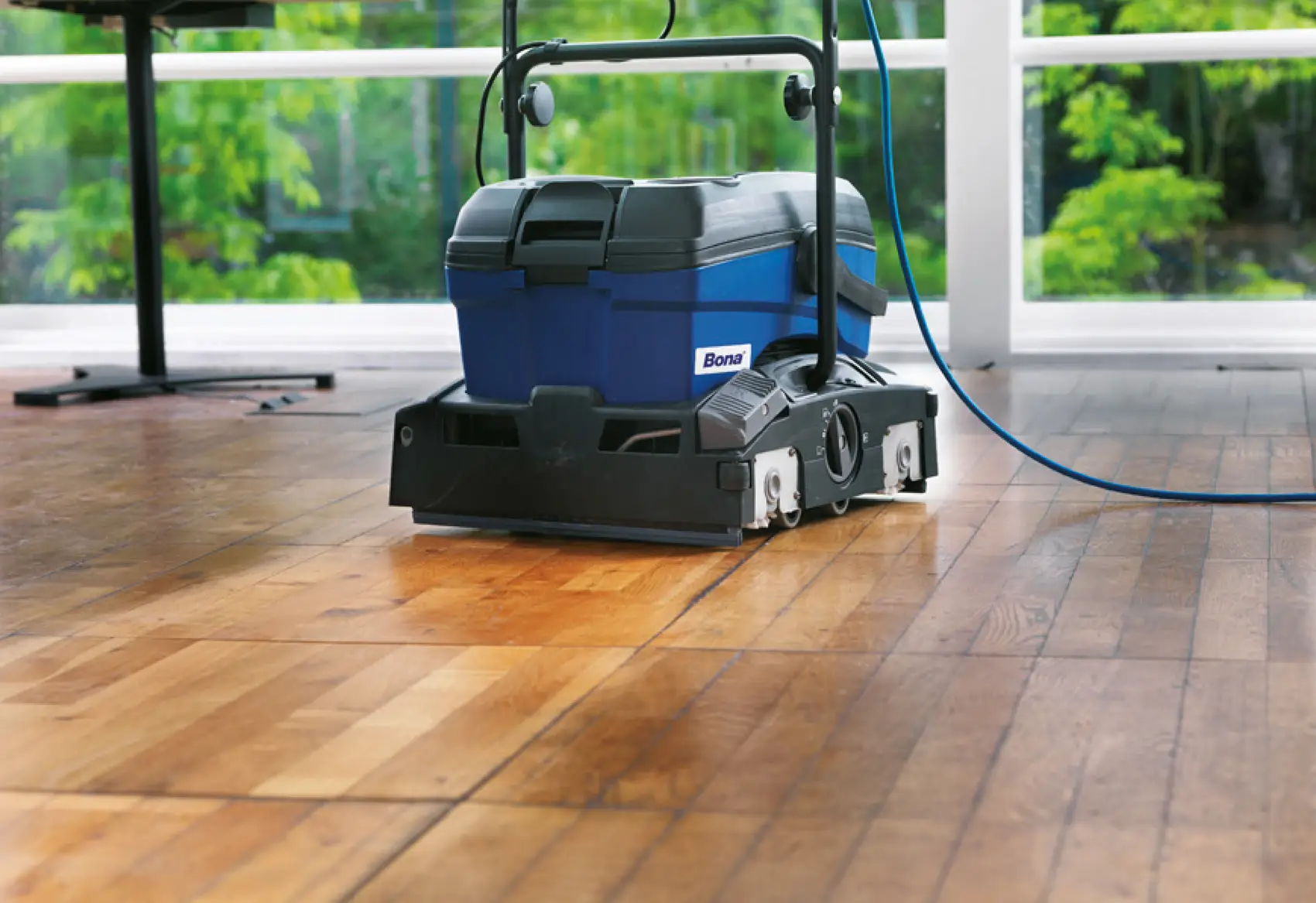 The Bona PowerScrubber is a compact, powerful scrubbing machine for cleaning coated and oiled wooden floors. When used with Bona Deep Clean Solution, it removes the toughest dirt and grime from wooden floors with ease. The two counter-rotating cylindrical brushes clean deeply, even on rough, brushed parquet and wooden floors with bevelled edges.