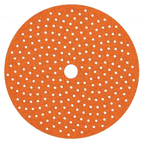 The Multi-Air Cyclonic technology optimizes an ingenious spiral-hole vacuum configuration in conjunction with a specialized cutting process for maximum dust extraction and a cleaner work environment. Norton’s precision laser-cut holes are true and flat and aid in directing dust into the holes to reduce airborne contamination. This unique Norton multi-hole pattern fits any random orbital vac-hole configuration without aligning the holes to the backup pad.